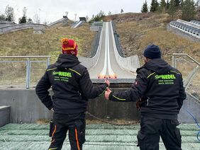 Genau dorthin führt uns unser aktueller Auftrag. Für uns ist Midtstuen alles andere als unbekannt: Bereits vor zwei Jahren realisierten wir dort im Rahmen unseres ersten Spur-Upcycling-Projekts eine Anlaufspur auf der Normalschanze HS 106. Dabei wurde die alte Spur aus Trondheim revitalisiert und am Midtstubakken wieder verbaut.